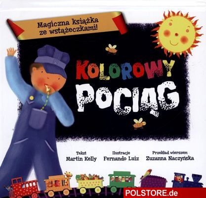 Patent na książkę banalny, ale jednocześnie w swej prostocie fantastyczny! Sukces tej pozycji tkwi we wstążeczkach, które jedna po drugiej pojawiają się wraz z każdą przewróconą stroną. Na aksamitce namalowano wagonik, kolejne strony i zwrotki wierszyka wyjaśniają, jakiego koloru jest wagonik i co przewozi. Dodatkowo przewlekające się przez karton wstążki sympatycznie szeleszczą, jakby z tunelu wyłaniał się pociąg. Ostatnie, już bezwstążeczkowe strony, pozwalają na utrwalenie poznanych kolorów i prezentują pociąg w całości (z dodatkowymi atrakcjami!).