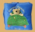 Książeczka wykonana z mięciutkiego futerka i materiału. Już na okładce, w zielonej pościeli, wyleguje się uroczy miś, przymocowany do grzbietu za pomocą tasiemki. Dziecko może go wyjąć, a następnie na kolejnych stronach: posadzić przy stole do kolacji, wykąpać w wannie, w której już pływa kaczuszka, umyć mu zęby, posadzić na kolanach u Taty Misia, który czyta bajki na dobranoc, pomóc dać mamie całusa przed snem, a w końcu - położyć do łóżeczka.