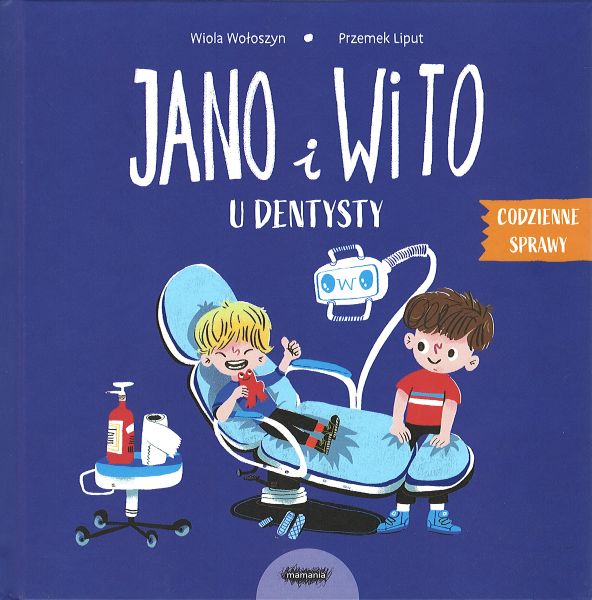 Jano i Wito u dentysty / Wiola Wołoszyn, Przemek Liput. - Warszawa : Mamania, copyright 2025. - [22] strony : ilustracje ; 21 cm.