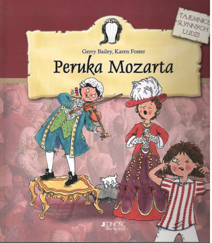 Akcja "Peruki Mozarta" toczy się na Jarmarku Różności, miejscu pełnym ruchu, gwaru i straganów z niezwykłymi różnościami, a najważniejsze jest tam stoisko pana Bibelota. Można u niego znaleźć wiele ciekawych przedmiotów, a z każdym z nich wiąże się jakaś opowieść - i to wspaniała opowieść! Darek i jego siostra Hesia często wydają swoje kieszonkowe właśnie u pana Bibelota. Uwielbiają też słuchać historii związanych z nowymi nabytkami. Ta książka: poprzez fikcyjną fabułę opowiada opartą na faktach biografię kompozytora Wolfganga Amadeusza Mozarta umieszcza niezwykłą historię jego sławy i muzycznych dokonań we współczesnym kontekście zachęca do dramy i zabaw w przebieranie, dzięki którym dzieci lepiej poznają historyczną postać
